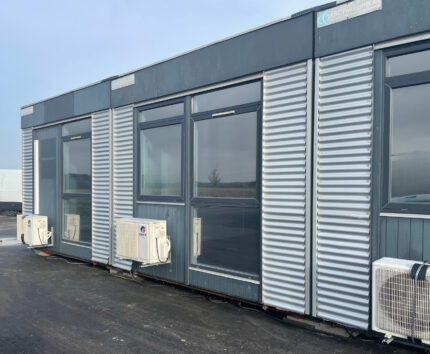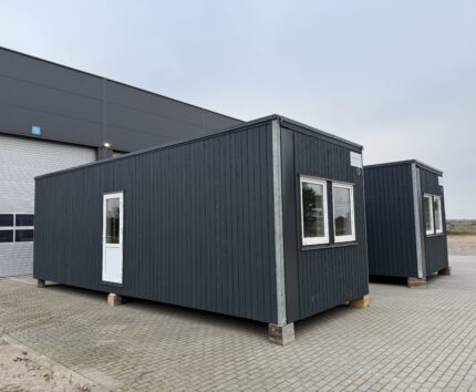 Midlertidige beboelsesfaciliteter med opholdsrum samt toilet og bad Bygningen består af 5 stk. multimoduler af størrelsen MM12, fordelt på seks værelser af 16 m2, et opholdsrum på 45 m2, et